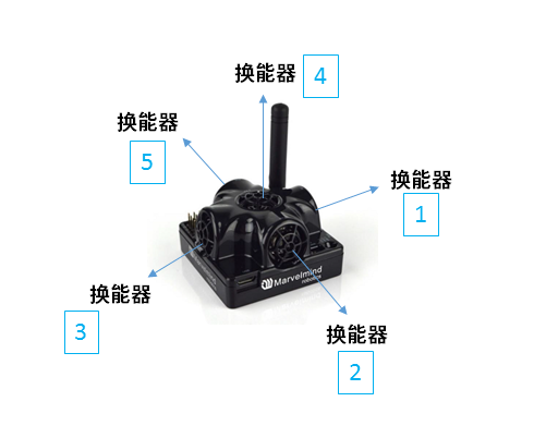 定位标签包含5个超声波换能器,收发各个方向的超声信号。