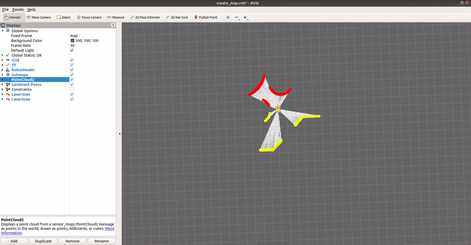 程序启动RVIZ打开。此时在远程端我们用键盘控制车无法运动。