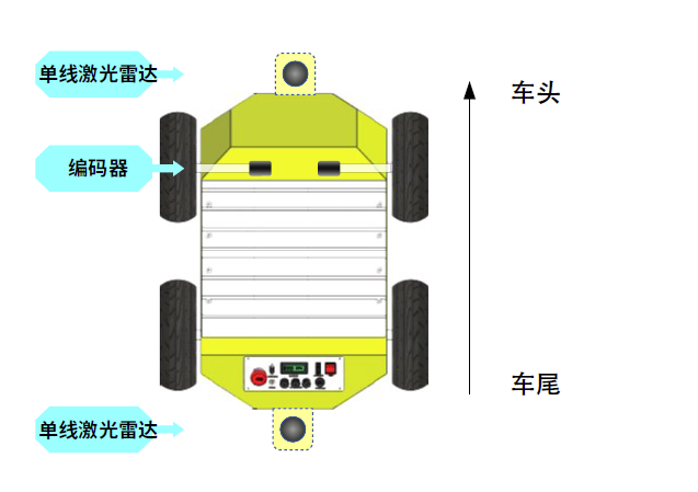 • 编码器/轮速里程计x2安装在车体内部前侧