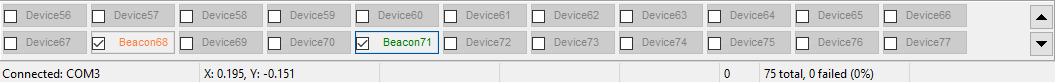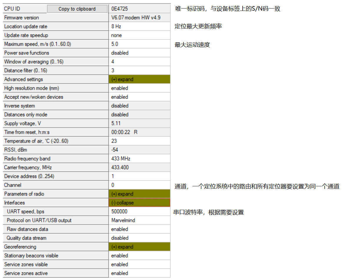 距离表显示系统中所有定位标签之间的距离。固定标签之间的距离用来计算地图,移动标签与固定标签之间的距离用来计算移动标签在地图中的坐标。固定标签之间的距离可以通过超声自动测量,也可以用户手动测量,下面详细介绍。