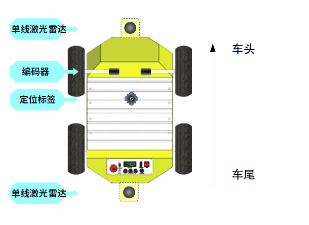 • 编码器/轮速里程计x2安装在车体内部前侧