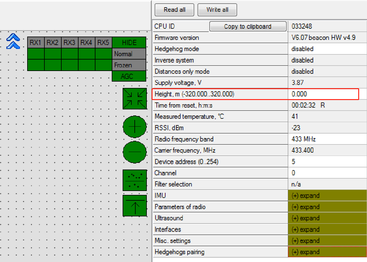 1. 点击设备列表中某个在线的标签则右侧列表为该标签的参数设置。依次设置4个固定标签的 Height 参数为标签布置的高度,注意单位为 m。