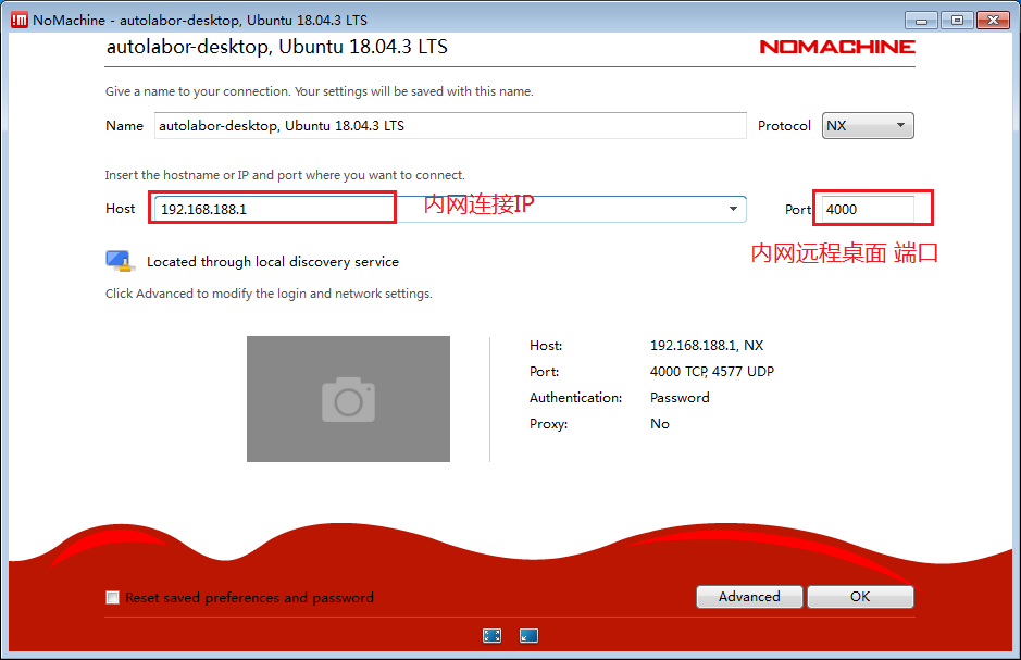 内网远程桌面访问地址: 192.168.188.1 端口4000