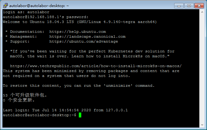 1. 输入 用户名autolabor 密码autolabor回车连接