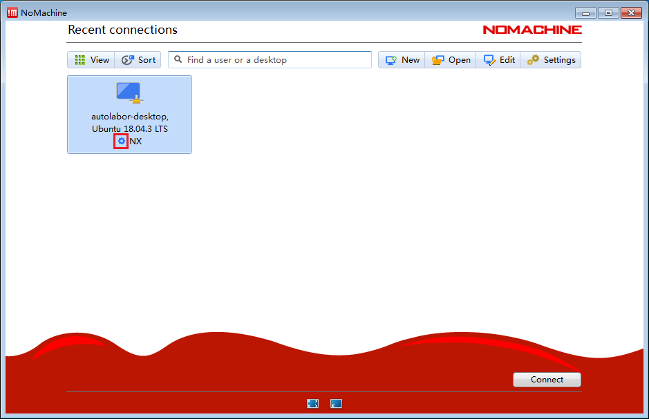 1. NoMachine 会将同一局域网中所有设备列出,与机器人在同一网络时,可直接看到机器人设备,右键点击设置图标,选择 Edit Connection 按钮确认IP地址是否正确。