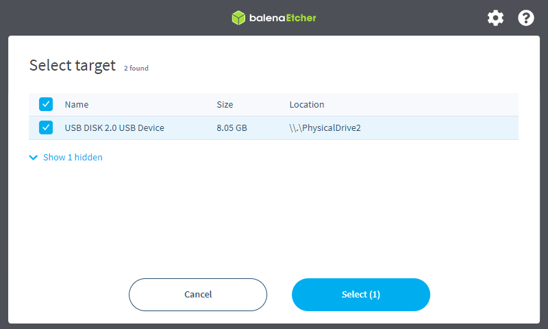 5.单击Select target(选择目标设备),并选择刚刚插入的U盘